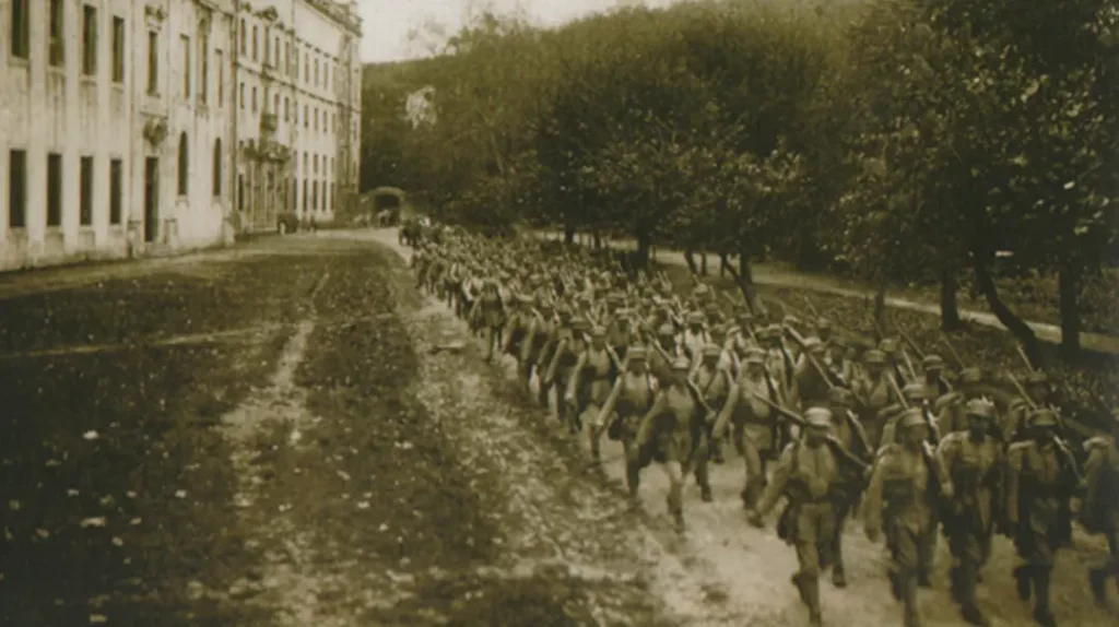 Fonte da Imagem: Aguarela de Roque Gameiro, Quadros da História Militar, 1917.